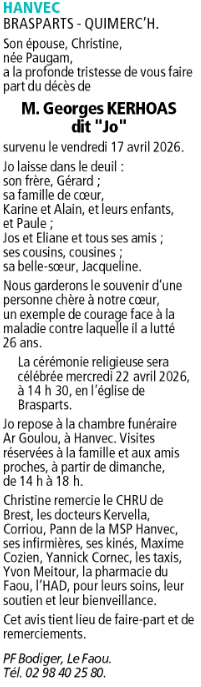 Avis de décès de Monsieur Georges KERHOAS