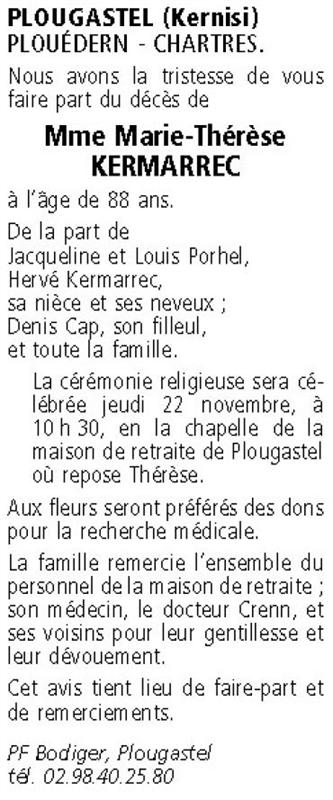 Décédée à Plougastel-Daoulas (29470, France) le mardi 20 novembre 2018 à l'âge de 88 ans