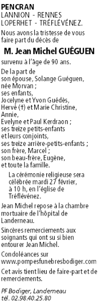 Décédé à Landerneau (29800, France) le jeudi 22 février 2024 à l'âge de 90 ans