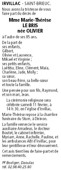 Madame Marie-Thérèse LE BRIS née OLIVIER