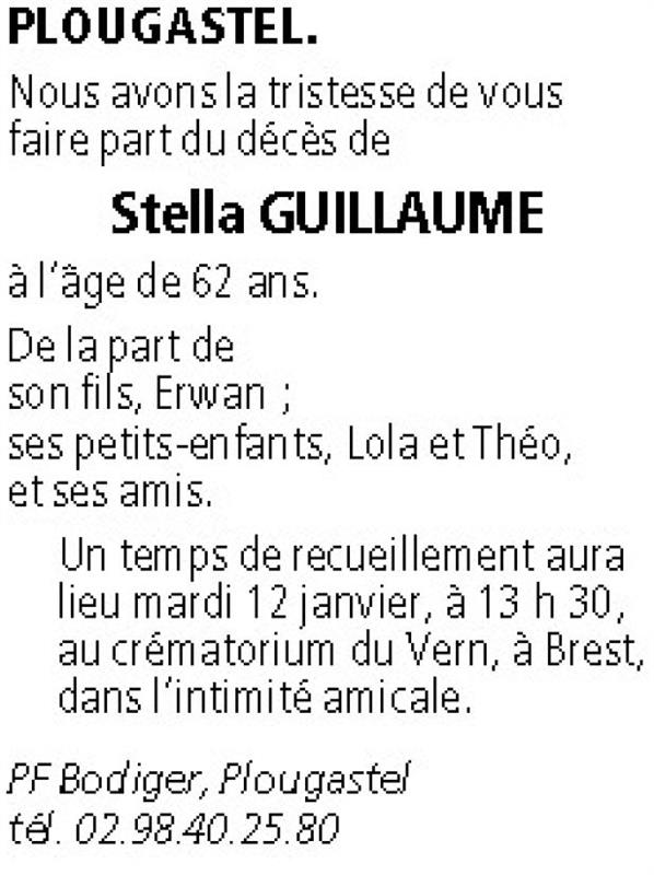 Décédée à Brest (29200, France) le vendredi 8 janvier 2021 à l'âge de 62 ans