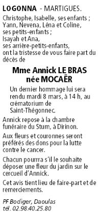 Madame Annick LE BRAS née Mocaër