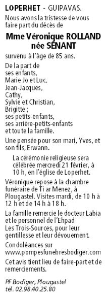 Veuve de Monsieur Yves ROLLAND