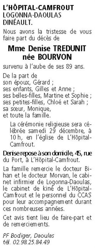 Madame Denise TREDUNIT née BOURVON