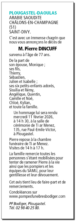 Décédé à Plougastel-Daoulas (29470, France) le vendredi 6 février 2026 à l'âge de 77 ans