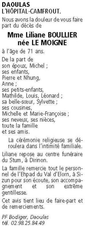 Décédée à Sizun (29450, France) le jeudi 17 janvier 2019 à l'âge de 71 ans
