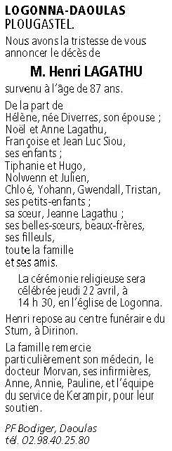 Décédé à Bohars (29820, France) le mardi 20 avril 2021 à l'âge de 87 ans