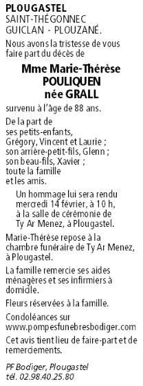 Née à Saint Thégonnec (29410, France) le lundi 9 décembre 1935