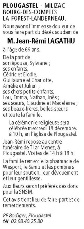 Décédé à Plougastel-Daoulas (29470, France) le samedi 14 décembre 2019 à l'âge de 66 ans