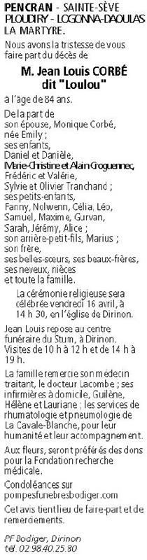 Monsieur Jean Louis CORBÉ