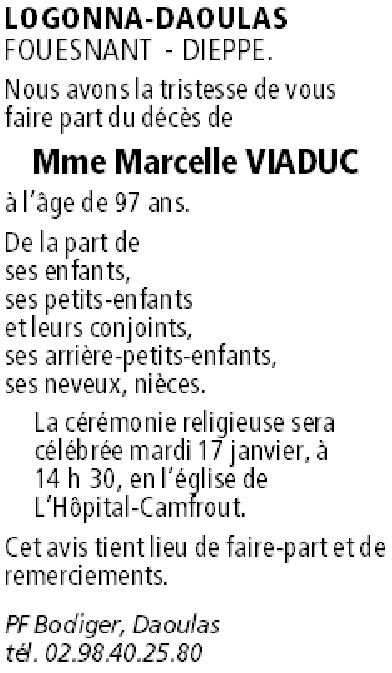 Décédée à Brest (29200, France) le samedi 14 janvier 2023 à l'âge de 97 ans