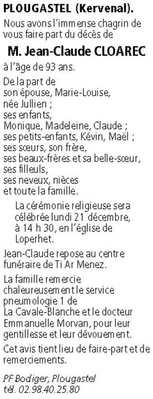 Epoux de Madame Marie Louise CLOAREC