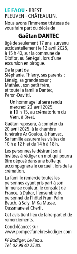 Décédé à Ndangane (23400, Sénégal) le samedi 12 avril 2025 à l'âge de 17 ans