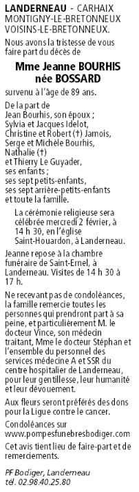 Madame Jeanne BOURHIS née BOSSARD