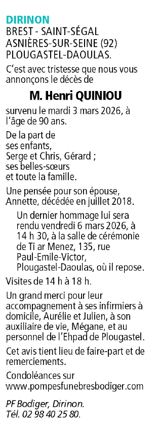 Décédé à Landerneau (29800, France) le mardi 3 mars 2026 à l'âge de 90 ans