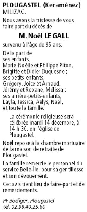 Décédé à Plougastel-Daoulas (29470, France) le vendredi 10 décembre 2021 à l'âge de 95 ans
