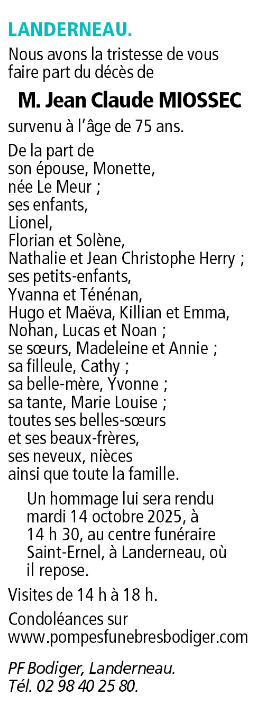 Décédé à Landerneau (29800, France) le jeudi 9 octobre 2025 à l'âge de 75 ans