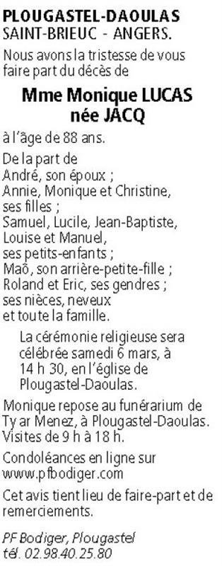 Madame Monique LUCAS née Jacq