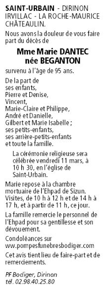 Madame Marie DANTEC née BÉGANTON