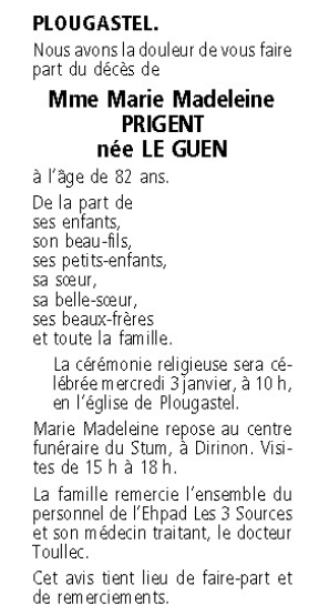 Madame Marie Madeleine PRIGENT née LE GUEN