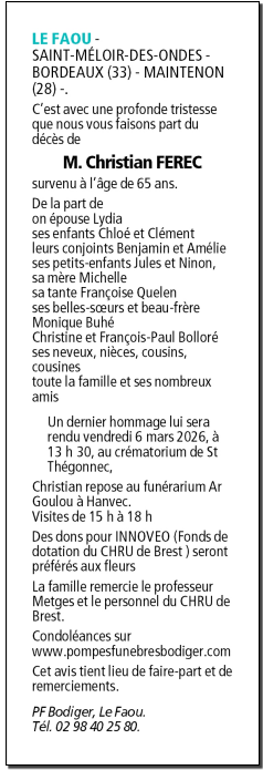le lundi 2 mars 2026 à l'âge de 65 ans