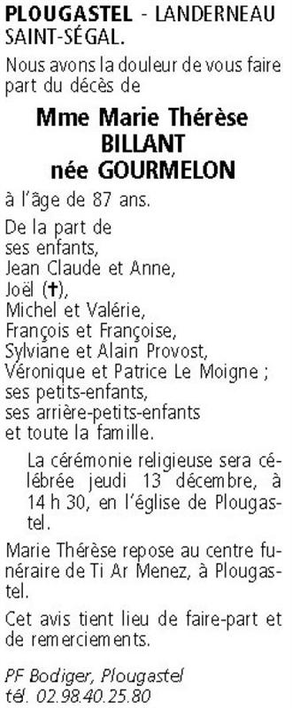 Décédée à Plougastel-Daoulas (29470, France) le lundi 10 décembre 2018 à l'âge de 87 ans