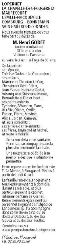 Décédé à Landerneau (29800, France) le vendredi 3 avril 2020 à l'âge de 86 ans