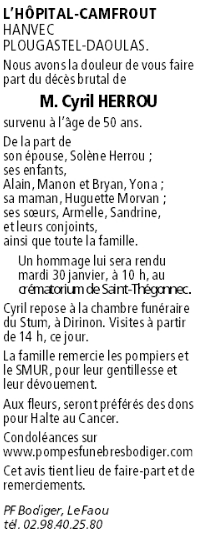 Décédé à L'Hopital Camfrout (29460, France) le mercredi 24 janvier 2024 à l'âge de 50 ans