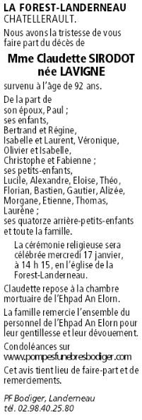 Décédée à Landerneau (29800, France) le vendredi 12 janvier 2024 à l'âge de 92 ans