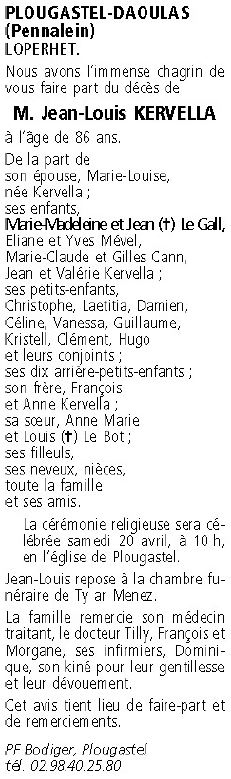 Décédé à Plougastel-Daoulas (29470, France) le mercredi 17 avril 2019 à l'âge de 86 ans