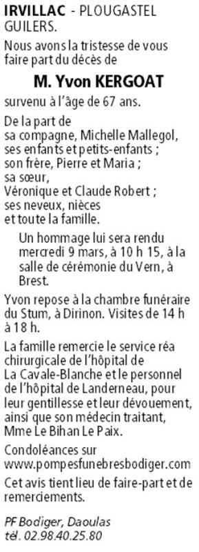 Monsieur Yvon KERGOAT