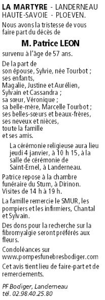 Décédé à La Martyre (29800, France) le dimanche 31 décembre 2023 à l'âge de 57 ans