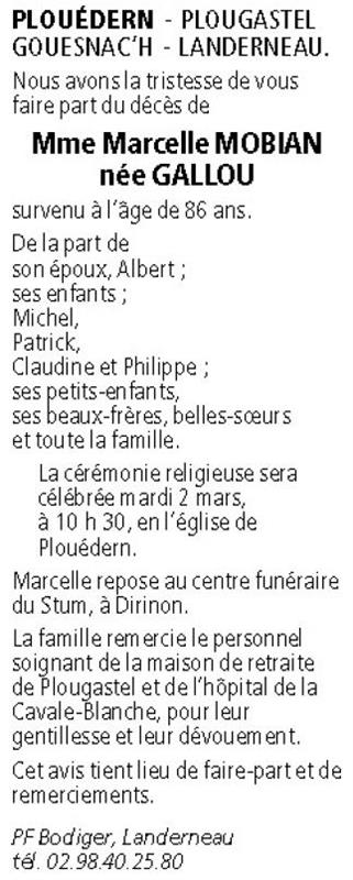 Madame Marcelle MOBIAN née GALLOU