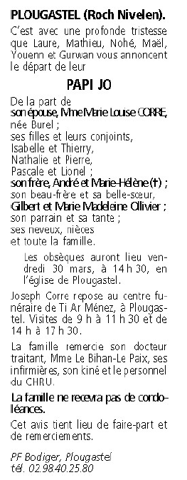 Décédé à Brest (29200, France) le mercredi 28 mars 2018 à l'âge de 69 ans