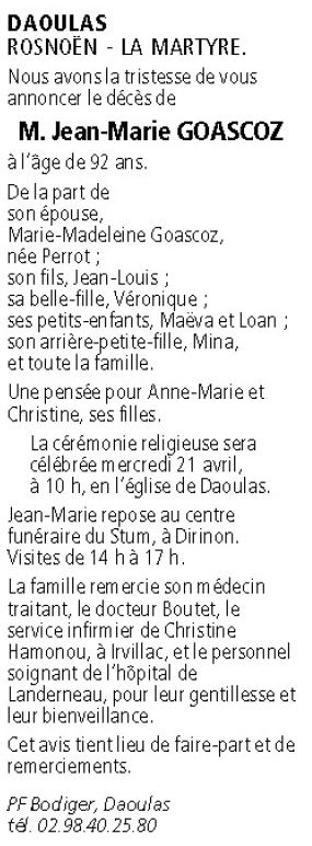 Epoux de Madame Marie-Madeleine GOASCOZ