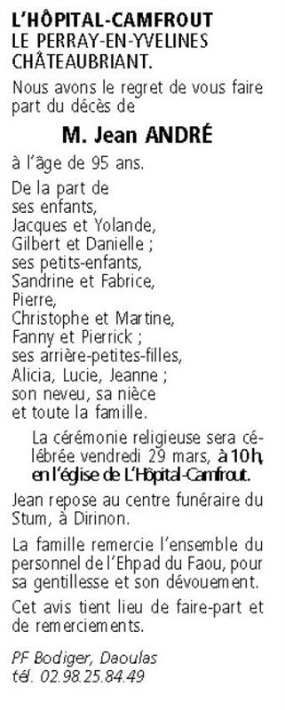 Décédé à Landerneau (29800, France) le mardi 26 mars 2019 à l'âge de 95 ans
