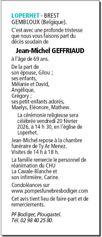 le dimanche 15 février 2026 à l'âge de 69 ans