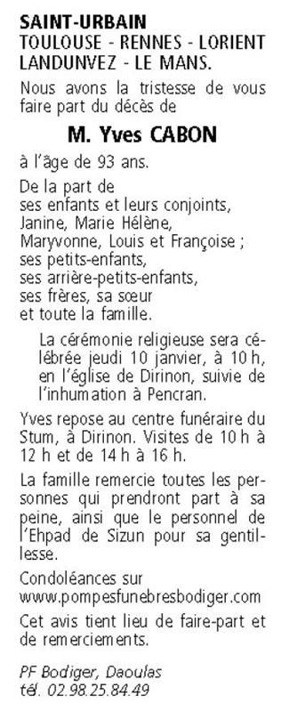 Décédé à Landerneau (29800, France) le dimanche 6 janvier 2019 à l'âge de 93 ans