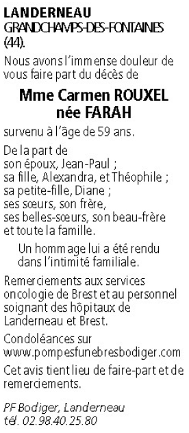 Madame Carmen ROUXEL née Farah