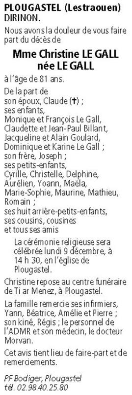 Madame Christine LE GALL née Le Gall