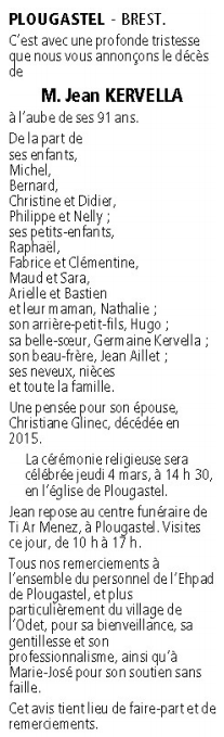 Décédé à Plougastel-Daoulas (29470, France) le lundi 1 mars 2021 à l'âge de 90 ans