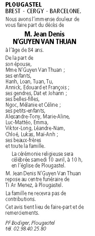Décédé à Plougastel-Daoulas (29470, France) le lundi 5 avril 2021 à l'âge de 84 ans