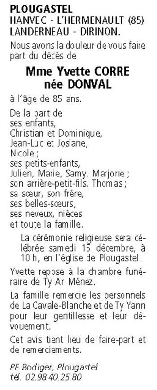 Née à Saint-Thonan (29800, France) le samedi 29 juillet 1933