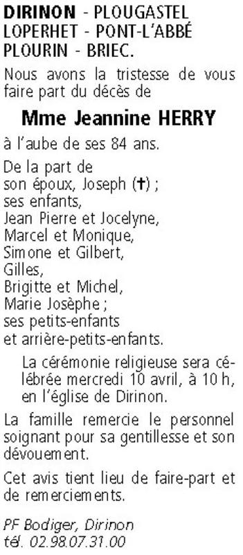 Décédée à Loperhet (29470, France) le dimanche 7 avril 2019 à l'âge de 83 ans